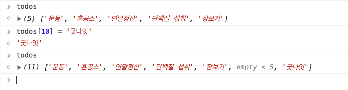 B. 인덱스를 사용해 배열 뒷부분에 요소 추가하기