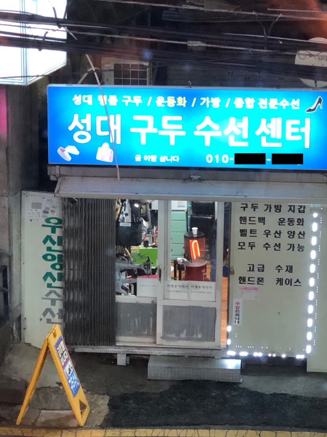 카페 창 밖에 보이는 구두수선 가게가